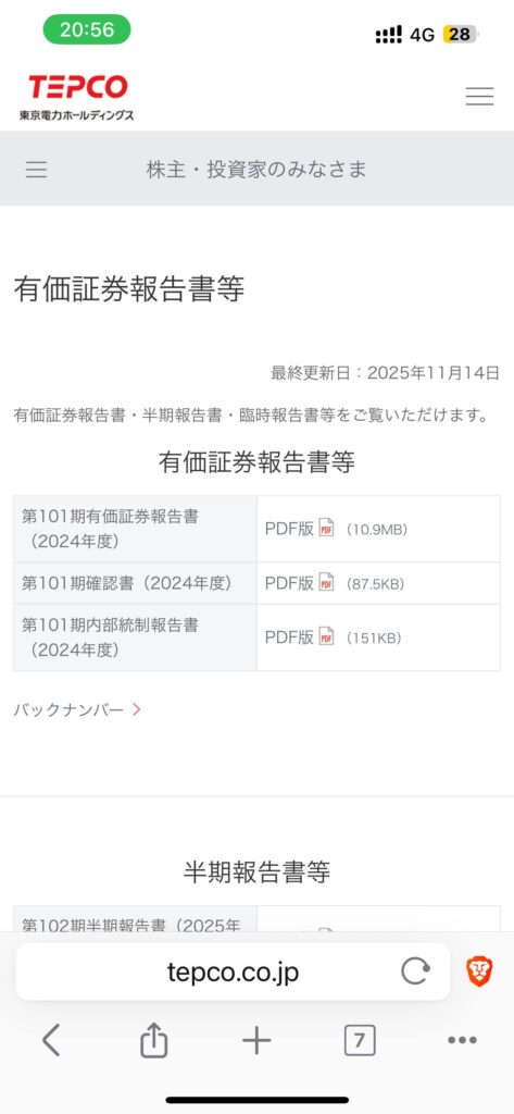 ここでは例として東京電力ホールディングス(株)(9501)を取り上げてみます。PBR 0.35倍。