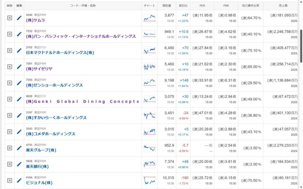 まずは自分が普段利用する企業をリストアップして「Yahooファイナンス」に登録します。
