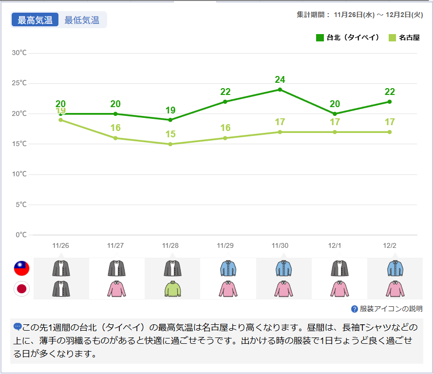 天気、気温の確認