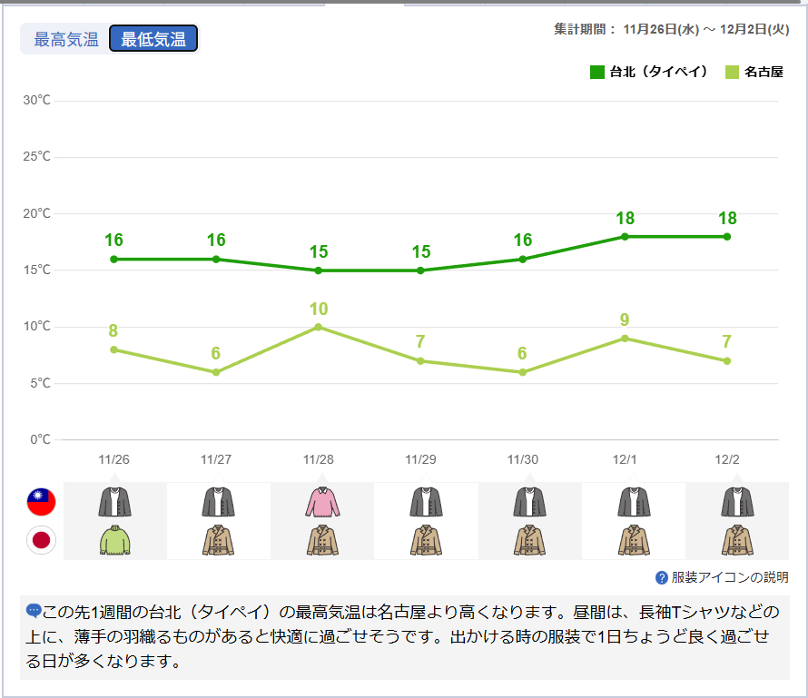 日中はTシャツで移動しており、列車内や夜間はセーターを着ていたことが多かったかな。