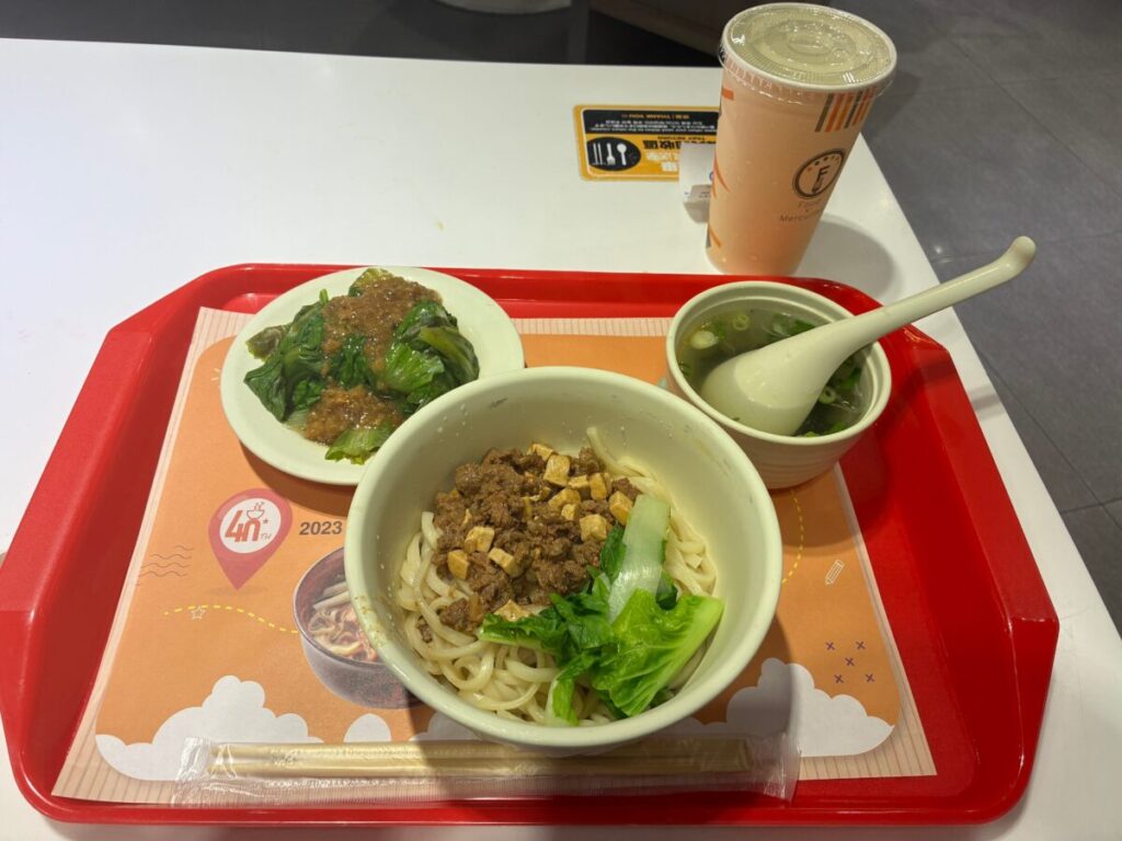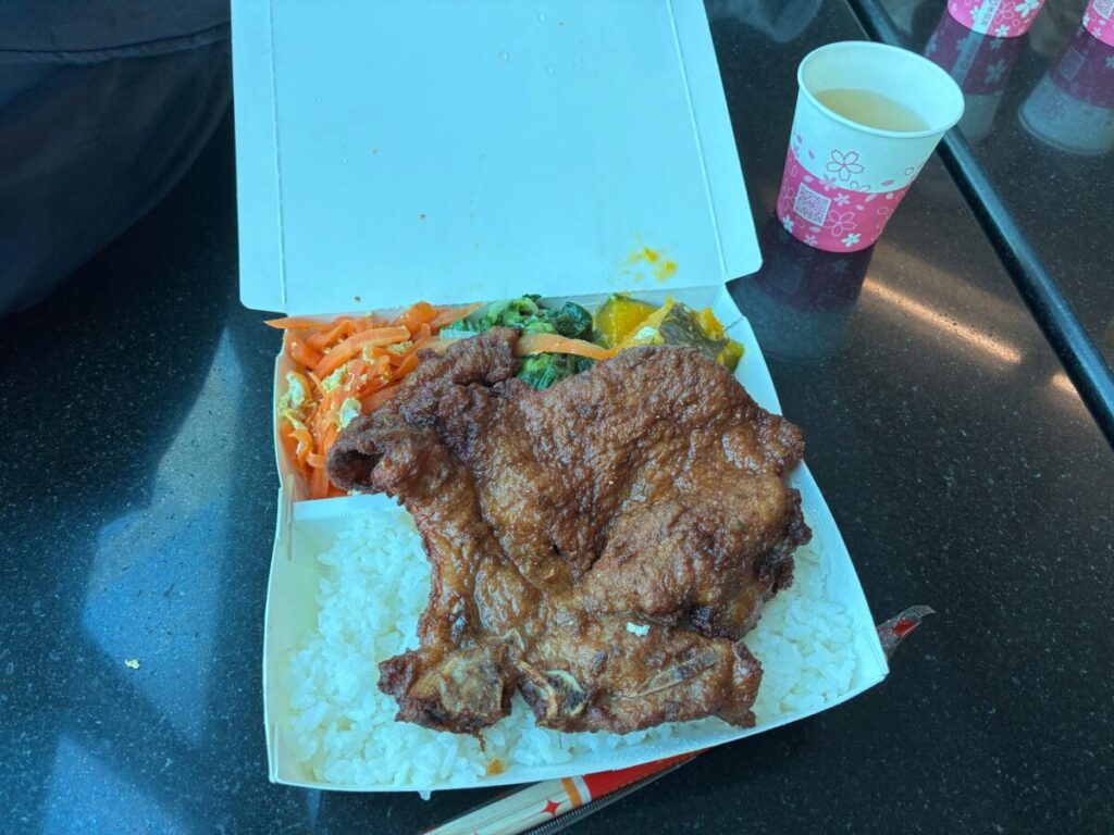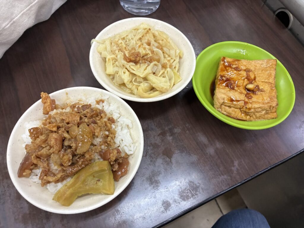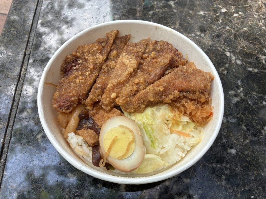 後日ほかの場所でも見かけたのでチェーン店っぽい。メインのご飯とおかず3品で100NTでした。