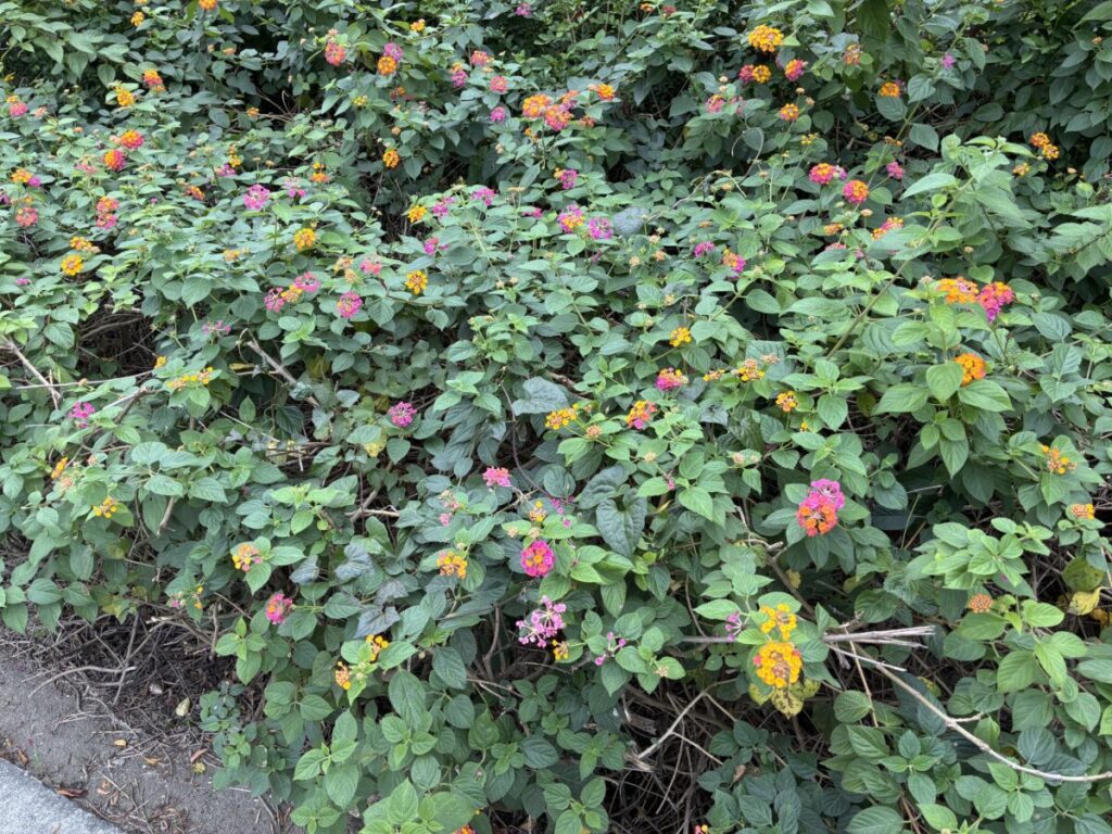 ミフクラギ(毒、別名目膨ら木)、オオバイヌビワ、ヤナギバルイラソウ、ランタナ(別名七変化)