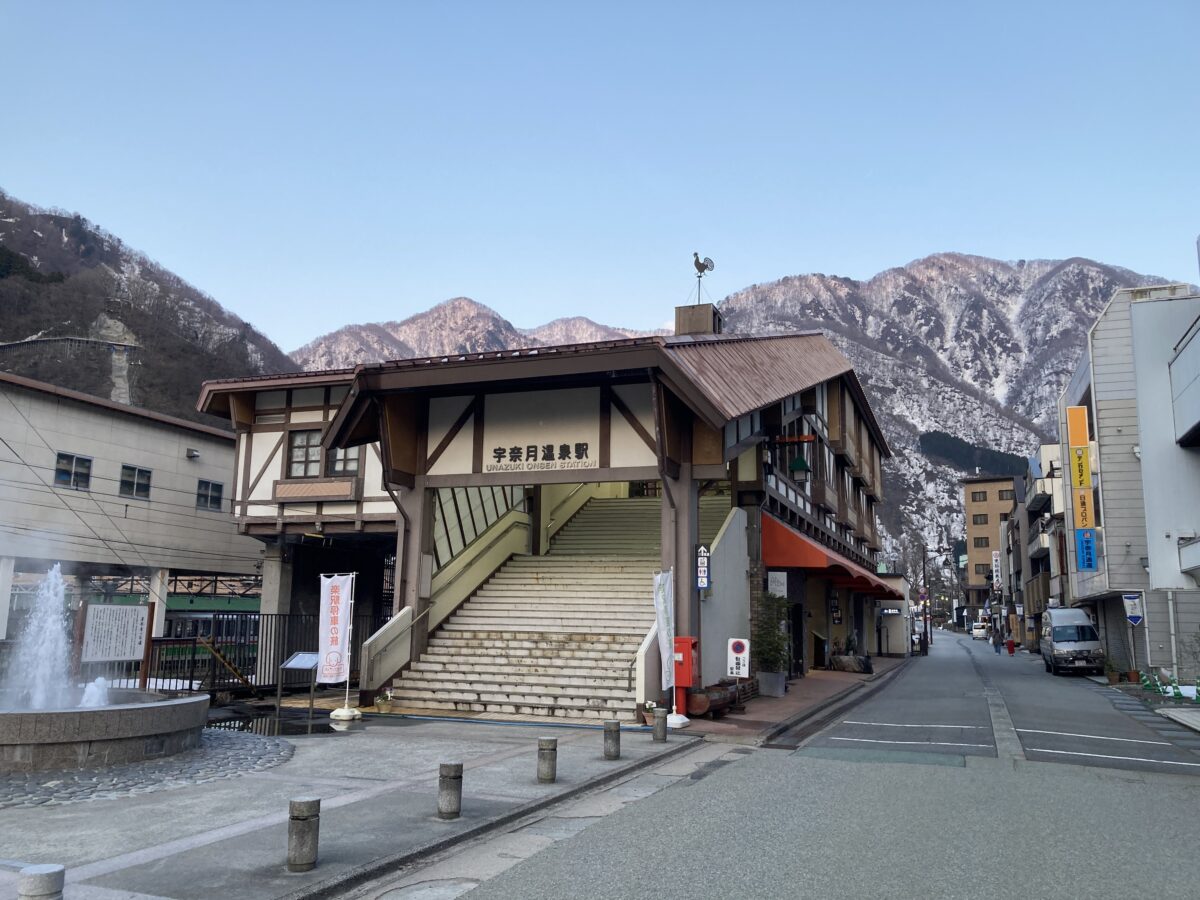 新幹線の糸魚川駅から黒部宇奈月温泉駅、そこから地方鉄道に乗って温泉街にやってきました。